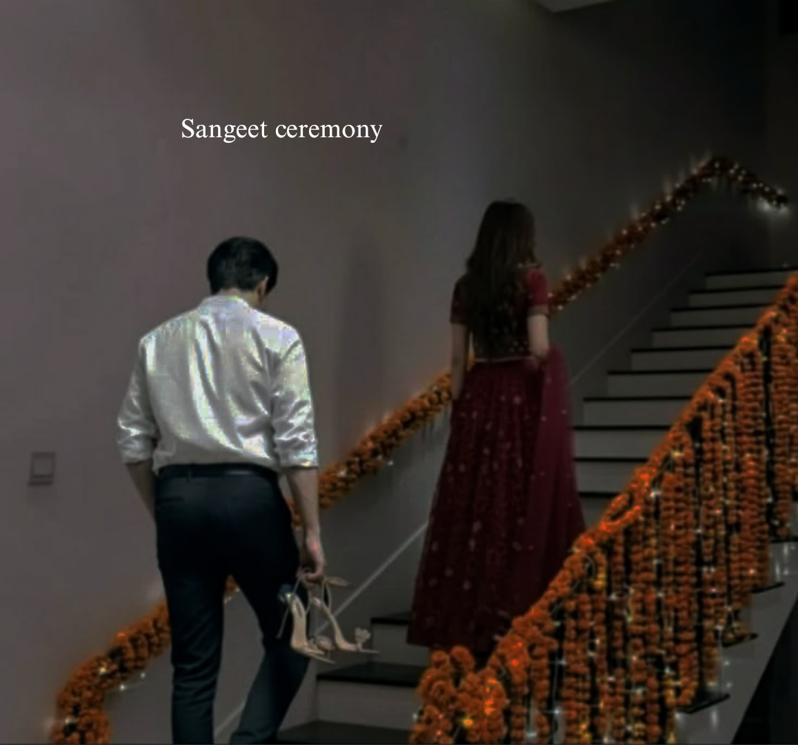 The moment my foot touched the last step of the staircase, I paused. The hall in front of me looked so beautiful that for a second I forgot everything. Golden fairy lights were draped from the ceiling like falling stars, soft music floated in the air, and fresh flowers filled every corner with a sweet fragrance. The entire place was glowing, grand, alive, and ready to celebrate.
